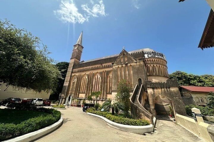 Choose between two options: enjoy convenient pickup from your Stone Town hotel, or include a guided visit inside the moving Slave Market Museum and Anglican Cathedral. Along the way, explore famous landmarks such as the Old Fort, House of Wonders, Sultan’s Palace Museum, Darajani Market, and Freddie Mercury’s childhood home.