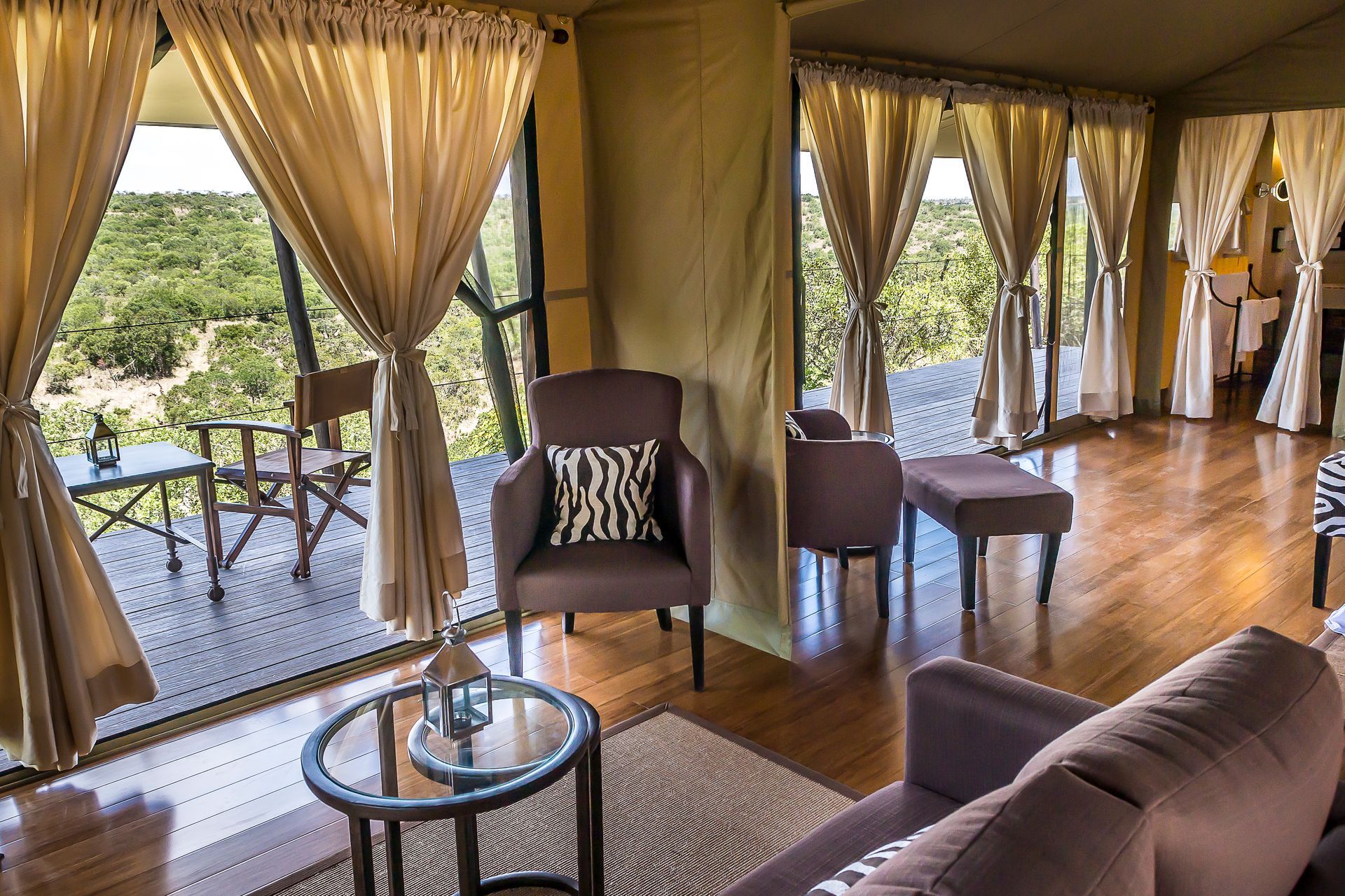 - Luxury tented accommodations with en-suite bathrooms and private verandas